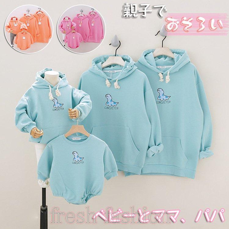親子 ペアルック ロンパース ママ お揃い 服 低廉 ペア カップル 韓国風 レディース 赤ちゃん 冬 リンクコーデ パーカー 親子ペア パパ